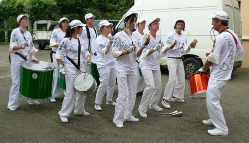 Tout avait bien commencé, l’association « Labatut en Fête » avait dressé, depuis la veille, son habituel chapiteau au bord de l’Adour. Tout était prêt pour que la Fête de la Musique 2010 puisse prendre son envol dans les meilleurs conditions d’accueil du public. C’était sans compter avec les caprices d’une météo qui rendit fort précaire et inconfortable une nocturne au bord de l’Adour. Qu’à cela ne tienne, foi de labatutois ! cette soirée musicale se devait d’avoir lieu. Elle fut donc simplement déplacée dans la salle des fêtes de la Mairie. Pluie et vent en furent quitte, en cours de nuit, pour contempler le spectacle derrière les fenêtres ! Et quel spectacle ! ![]() Le groupe de percussionnistes "Sambadour", fidèle au rendez-vous, donna le coup d’envoi sur le rythme endiablé de la batucada. Spectaculaire cohésion rythmique que celle de ces neuf exécutants. Prouesse rendue possible grâce à la magistrale et énergique conduite de leur chef d’orchestre, en parfaite fusion avec sa…percutante meute ! Vint ensuite la prestation du groupe "Flying Bananas", avec un Thierry Nicolaï mettant sa voix et son talent au service du blues et du rythm and blues. Comment imaginer, un seul instant, honorer la musique sans la présence des « Flying Bananas » ?!?En intermède, du groupe "Flying Bananas" - la Fête de la Musique étant par tradition ouverte aux amateurs - vinrent se glisser les "Khrama Singers", groupe vocal franco-britannique issu de Labatut et de Mazères. Pas moins de sept chansons, puisées dans le répertoire de Fugain, Nougaro ou Ella Fitzgerald, pour terminer sur une "Jument de Michao" de Tri Yann, reprise par une bonne partie du "saloon", pardon, de la salle ! La fête montait en puissance, le bar et ses fidèles aussi, quand vint le tour de chant de Karoline Legrand. Difficile dans ces conditions d’apprécier pleinement la qualité de la voix, chaude et sensuelle, dont elle nous fit cadeau ce soir-là. Etonnant parcours que celui de notre récente labatutoise ; elle qui, c’était hier à peine, fut présente de longues semaines au Top 50 avec "J’aurais voulu te dire". Bien agréable surprise que cette surprenante rencontre, au détour d’une Fête de la Musique, au fin fond du Val d’Adour ! C’est à cet instant, après un retour en force de la batucada et de "Sambadour", que tout bascula avec l’entrée en scène du trio de "La Naïade". Un guitariste, un accordéoniste, et une voix, et quelle voix ! celle d’une chanteuse bien décidée à s’approprier non seulement le public mais également les bruyants fidèles du bar… L’issue du match ne se fit pas attendre, c’est "La Naïade" qui l’emporta. Remarquable trio qui fit planer spectateurs et danseurs fort tard et jusqu’à épuisement. Un "bœuf" vint clore cette chaude nuit musicale, avec la participation improvisée de tous les groupes présents lors de cette soirée. Quel meilleur symbole pouvait-on espérer pour une Fête de la Musique ? Quant aux Feux de la St Jean, délaissés au bord de l’Adour pour les raisons climatiques précédemment exposées, ils ne furent allumés que ce samedi 26 juin. Bien sympathique regroupement sur le terrain de tennis municipal, qui permit d’accueillir de nombreux spectateurs, pour une dégustation de punch et de pâtisseries préparés par la communauté labatutoise aussi bien que britannique. Grâce au punch créole, la chaleur du brasier tout proche fut également dans les cœurs… Que "Labatut en Fête" et tous ceux qui ont contribué, sur ces deux samedis, à égayer nos soirées, soient ici remerciés.