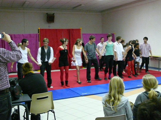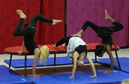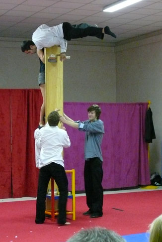 La salle des fêtes n’autorisant pas, techniquement, un développement des portiques et des agrès, le spectacle présenté ne proposait que des exercices au sol. Gymnastes, équilibristes et jongleurs se sont donc succédés pour le plus grand plaisir des spectateurs, petits et grands. L’esprit du cirque fleurait bon, au sein de cette brochette de jeunes artistes. Complicité, enthousiasme, humour espiègle, accompagnèrent leurs performances. Il ne restait plus au public qu’à offrir, en retour, des salves d’applaudissements bien méritées. Celles-ci ne manquèrent pas, mais vous vous en doutiez !… La seconde partie de cette soirée fut musicale, avec le jeune trio CAMDEATH, composé d’un batteur et de deux guitaristes. Si le succès attendu est en proportion du volume de décibels emplissant la salle ce soir-là, gageons que nos trois jeunes instrumentistes ont, devant eux, un avenir prometteur… Que la Commission Culture animée par Roger Lafourcade, initiatrice de cette soirée, et l’association "Labatut en Fête", qui en fut le sponsor, soient ici remerciées.